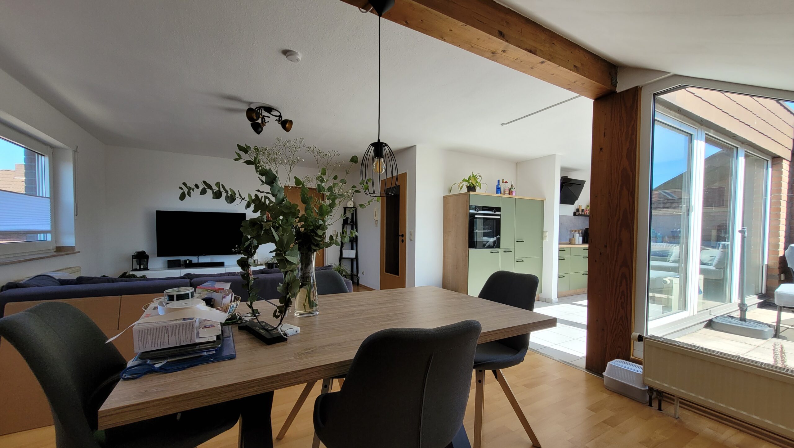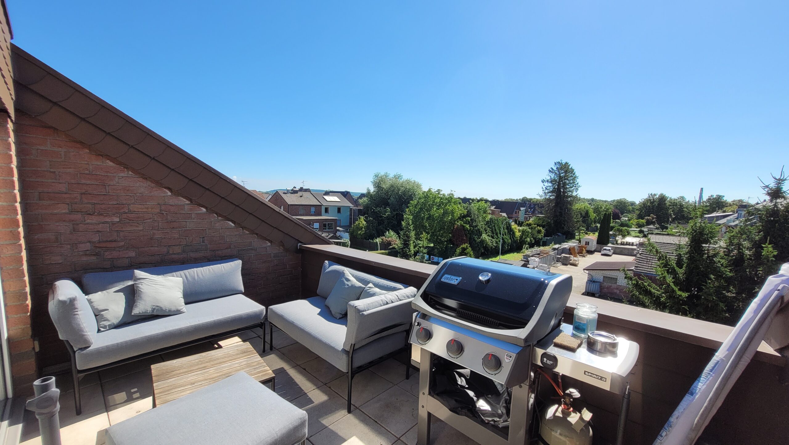 Zur Wohnung gehört ein uneinsehbarer Balkon mit Blick ins Grüne, auf dem es sich wunderbar vom Alltag erholen lässt.