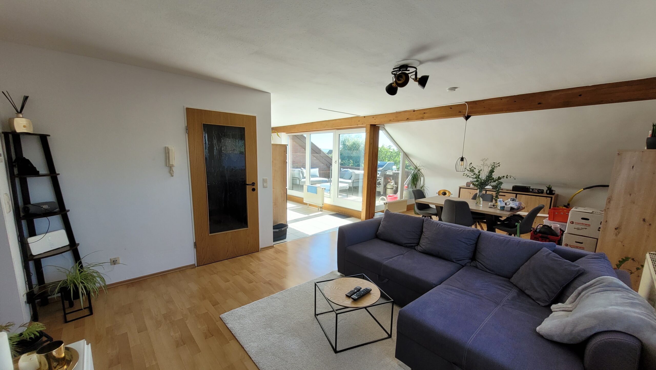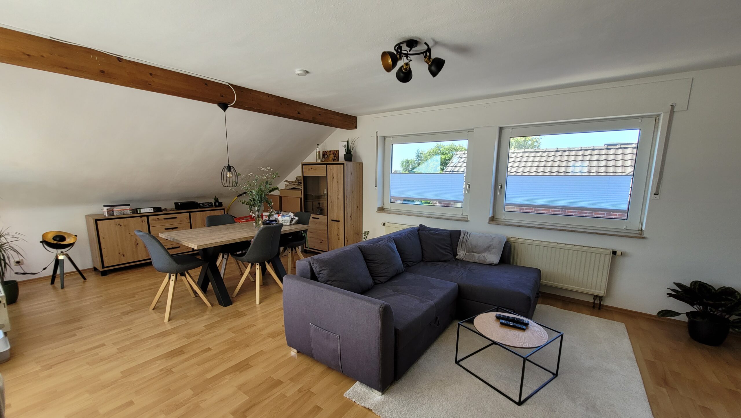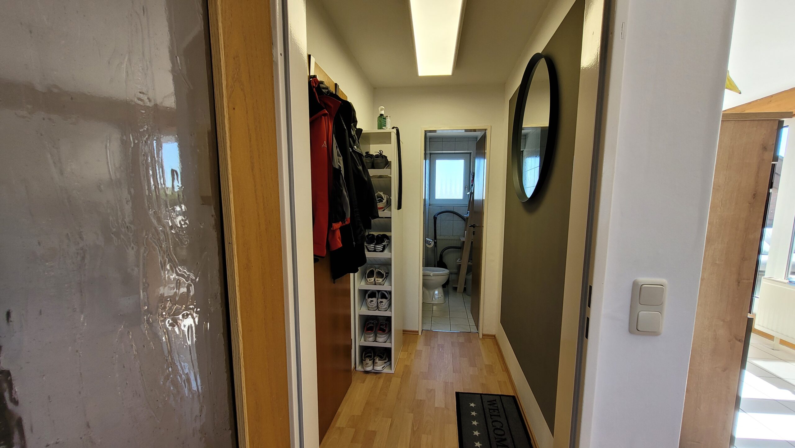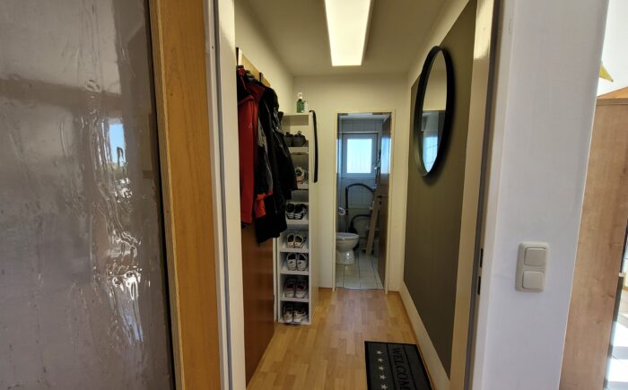 Alle Böden in der Wohnung sind mit Laminatboden und Fliesen ausgestattet.