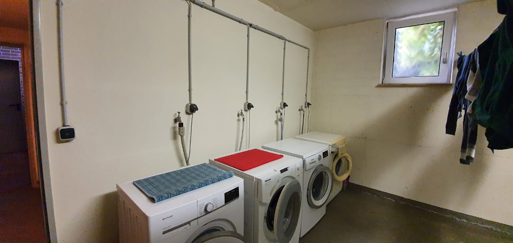 Im vorhandenen Keller (mit Fenster) können Sie Ihr Hab und Gut bequem verstauen. Im Kellerbereich befindet sich ebenfalls die Waschküche, in der Sie Ihre Waschmaschine und einen (Abluft)-Trockner deponieren können.